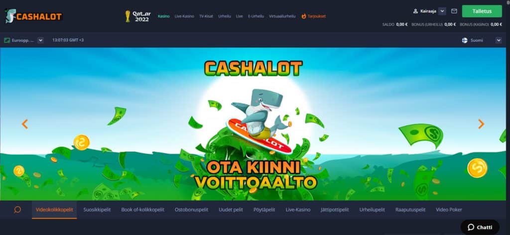Cashalot on hyvä nettikasino pelaajalle joka tykkää pelata kolikkopelejä ja siinä samassa piipahtaa live casinolla tai asettamassa vedot cashalotin sportbookissa. Tarjolla on runsaasti bonuksia vaikka ei mitään suuria, ovat ne aina lunastettavissa kun vierailet kasinolla.